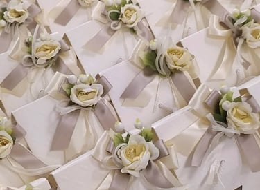 Confezioniamo gli oggetti che ci porti con fiocchi, confetti e bigliettini personalizzati per ogni occasione speciale.